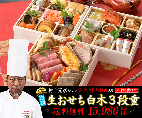 【おせち卸販売ドットコム】生おせち料理 村上シェフ手作り重入3段重